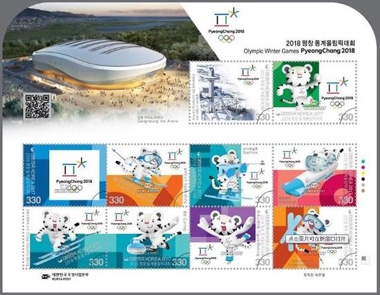 据韩国《亚洲经济》报道,2018平昌冬奥会纪念邮票于11月1日正式发行,邮票发行总量为140万张,共计20种,包括印有奥运会主竞技场外观、平昌冬奥吉祥物白虎“Soohorang”等。2018平昌冬奥会纪念邮票于本月1日起,在全国220多家邮局和邮局官网上销售。