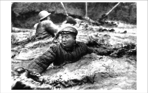 铁人跳进泥浆池,用身体搅拌泥浆。资料图