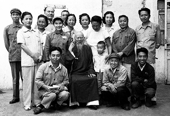1952年,吴祖光、新凤霞夫妇与白石老人合影