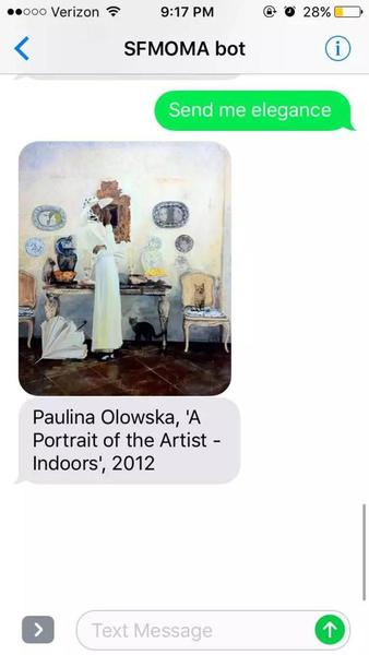 据了解,该项目上线一周后,旧金山现代艺术博物馆就收到了约200万条短信,博物馆相关团队工作人员表示:“我们期待的,不是哪个用户通过短信这种方式一览我们所有的3万多件藏品,而是成千上万的人以这种有趣、创新的方式与艺术品建立某种联系。”