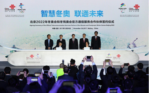 12月26日晚,中国联通与北京2022年冬奥会和冬残奥会组织委员会签约仪式在中国联通大厦举行。这标志着中国联通正式成为北京2022年冬奥会和冬残奥会官方通信服务合作伙伴,跻身于北京冬奥组委市场开发计划最高级别的赞助企业之列。