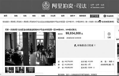 北青报记者登录该司法拍卖平台,看到了这两处以近亿元天价成交的房产。