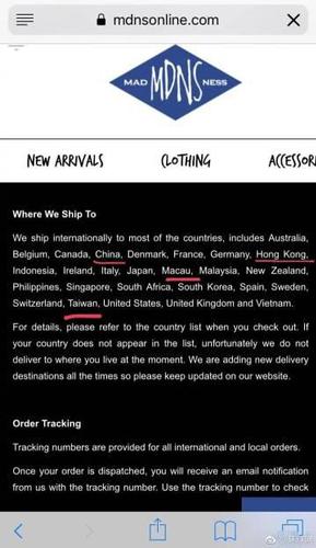原标题:余文乐潮牌madness官网把“台湾”“香港”“澳门”列为国家,网友举报后深夜致歉