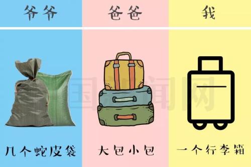 从前,长辈们坐火车回家,总是带着很多行李,从爷爷的蛇皮袋到爸爸的手提箱,各种“容器”各显神通。现在,很多年轻人一个行李箱就够用了。