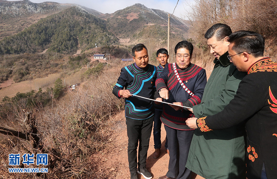 新华网北京2月12日电 11日上午,正在四川省考察的习近平深入大凉山腹地,走进昭觉县三岔河乡三河村。沿着崎岖山路,他一一走访贫困户,并与村民代表、驻村扶贫工作队座谈交流,结合当地特点给村民们支招致富路。习近平表示,让人民过上幸福美好的生活是我们的奋斗目标,全面建成小康社会一个民族、一个家庭、一个人都不能少。(据新华社“新华视点”微博报道 记者:霍小光 摄影:鞠鹏、谢环驰)