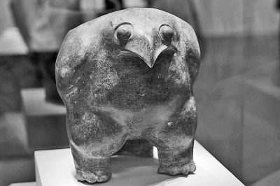 这是一只有着胖胖腿的鹰,尾巴又和两只前爪巧妙地构成了鼎的三足。鹰的胸部和身体占鼎身的主要部分,内容即胸怀。陶鹰鼎的造型,带着上古的气息,也带着中原质朴的民风。但更神奇的是,它除了上古的王者之气,又同时显示出另一种很现代的气质,用当下的话说,就是“萌萌哒”。在这个层面,陶鹰鼎又可谓古典与现代的美妙融合。六千年前的造型艺术精湛至此,令人不禁赞叹。