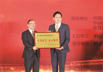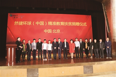 3月31日,由中国扶贫开发协会、民革北京市委会、民革贵州省委会等联合爱心企业然健环球(中国)日用品有限公司举办的博爱精准教育扶贫捐赠仪式在北京钓鱼台国宾馆举行。经京黔两地民革组织牵线搭桥,然健环球将连续5年每年向贵州省纳雍县、普定县的贫困学生捐赠助学金60万元,总计300万元用于资助家庭经济困难、品学兼优的学生,帮助其顺利完成学业。