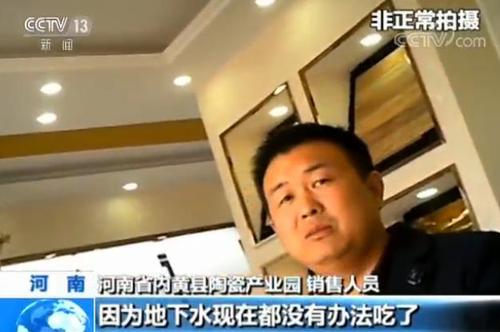 河南省内黄县陶瓷产业园销售人员:“污染不小,因为地下水现在都没有办法吃了,国家让停产的时候,我们这边都是白天停,夜里生产。”