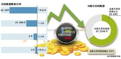 根据乐视网本月初的公告披露,截至2017年底,公司应收账款账面余额为71.81亿元,关联方应收账款余额为47.26亿元,占比65.81%;从回款情况看,2017年期末应收账款回款情况是1811.62万元,其中,关联方应收账款回款仅为6.79万。
