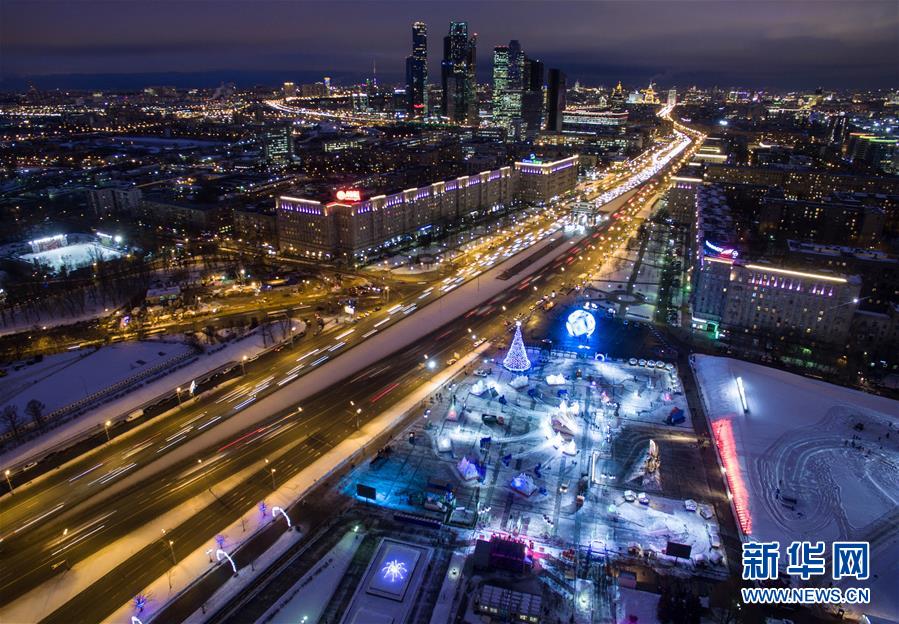 这是2016年12月29日在俄罗斯首都莫斯科拍摄的库图佐夫大街和凯旋门夜景。 新华社/卫星社