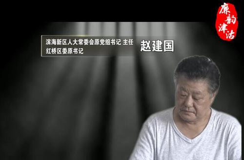 今年63岁的赵建国曾任天津市红桥区委书记,落马时担任天津市滨海新区人大常委会党组书记、主任一职。赵建国在干部选拔任用中,经常是组织还没考察,便把风声透露给当事人,使对方以为职务提升要归功于赵书记提携,使干部对他大搞人身依附。面对如此霸气的赵建国,连时任区长的张泉芬都乖乖送上20万,以“示弱”“示好”。据片中介绍,赵建国此人颇有江湖习气,时常以老大自居,告诫属下要讲义气,甚至在某次聚会上,他就以老大的名义,对着某名女下属说:“如果你丈夫对你不好,我就找人做了他。”