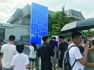 一名带着孩子从学校参观出来的家长告诉记者,“东门基本上都是团体预约的人,散客都从西门进出。”这位家长说,他早在半个月前就已经提前预约了参观的名额。“去年我就想带孩子来北大参观,激励他好好学习。但当时也是因为没有预约,没有进去。今年我就长记性,提前在网上查好,把北大清华都约好了,这才顺利进去的。”记者看到,学校门口有一个招牌,上面印着一个预约的二维码。记者扫二维码进行预约,发现预约参观时间排在8月10日,填写实名信息后就显示预约成功,流程很方便快捷。