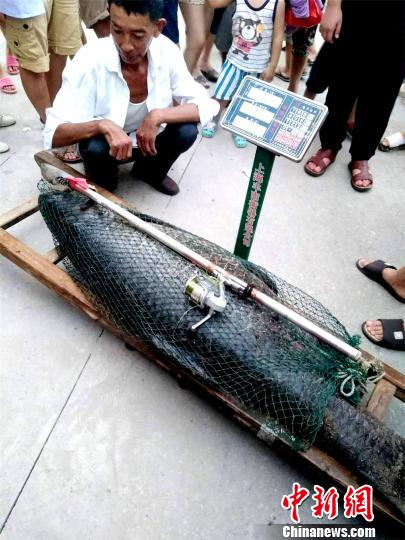 湖北一男子钓到102斤重青鱼 鱼身长达1.6米