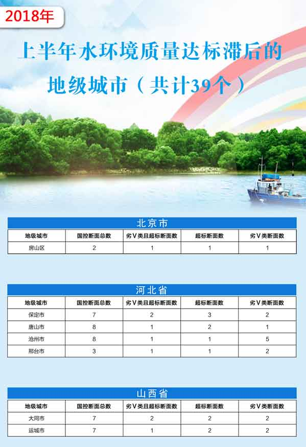 人民网北京8月23日电 据生态环境部网站消息,根据地表水环境质量监测数据,2018年上半年,共有39个及以上地级城市地表水环境质量达标滞后,完成年度目标任务难度较大。