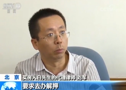 买房人白先生的代理律师 刘军:对方就说办解押可能还需要一些手续费,可能要十万块钱,我们这边就不同意。
