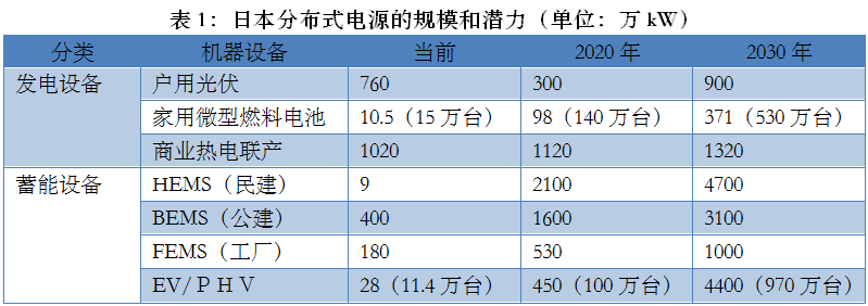为完成巴黎协定国家自主减排目标,日本一方面从电力供给侧入手,大力发展以光伏发电为主的可再生能源以弥补核电缺口和替代化石能源,但由于可再生能源发电本身所具有的间歇性和波动性,仍难以保障电力的稳定供应;另一方面,从电力需求侧管理入手,除了依靠传统的节能措施外,深度挖掘用户侧的分布式能源潜力,这已成为日本实现脱碳化目标的一条新路径。
