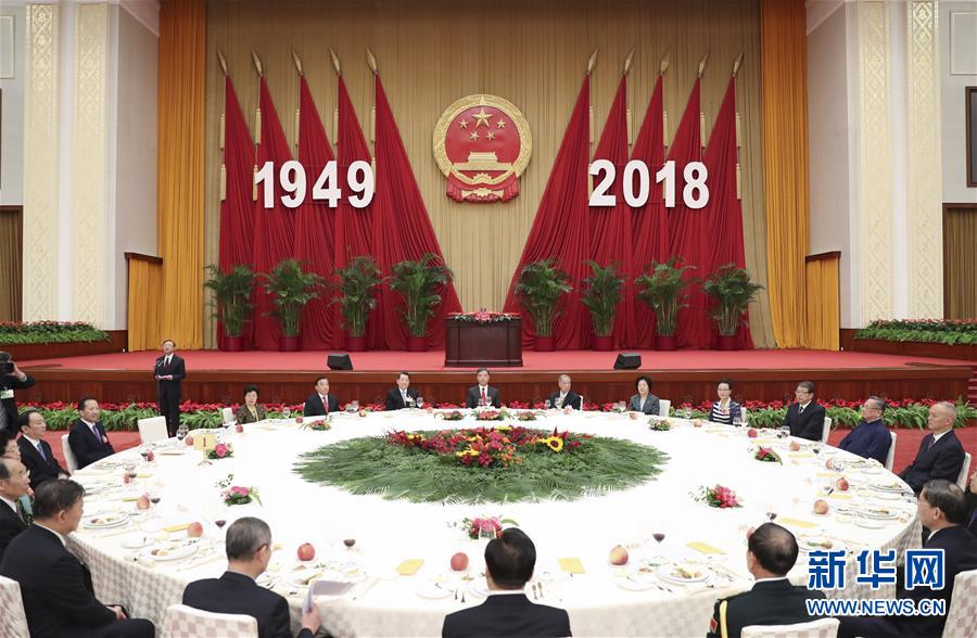 9月28日,全国政协办公厅、中共中央统战部、国务院侨办、国务院港澳办、国务院台办在北京人民大会堂联合举行国庆招待会。中共中央政治局常委、全国政协主席汪洋出席并讲话。新华社记者丁海涛摄