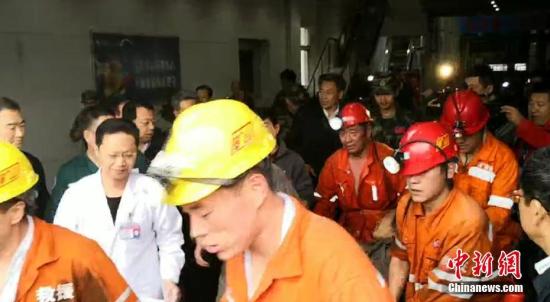 1名被困人员成功升井获救。中新社记者 梁犇 摄