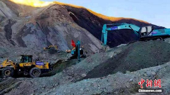资料图:挖掘机等设备在金沙江堰塞湖坝体上开展排险作业。文/江飞波 何蓬磊 昌都市应急办 供图