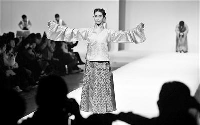 “青·萱”系列作为学生节日礼服,以传统袍衫为基本形制摄影/本报记者 袁艺