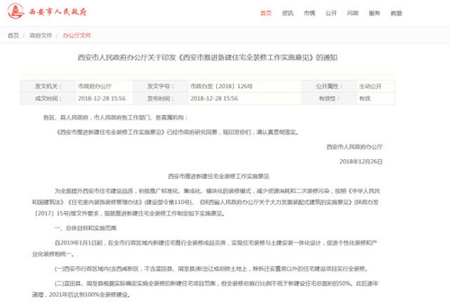 原标题:西安市政府发文 拟对行政区域新建住宅全装修成品交房引热议