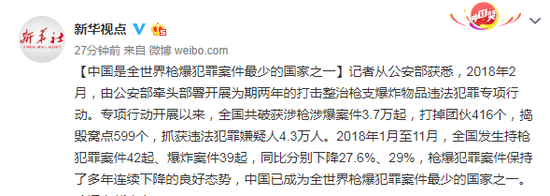 关键词:中国已成为全世界枪爆犯罪案件最少国之一