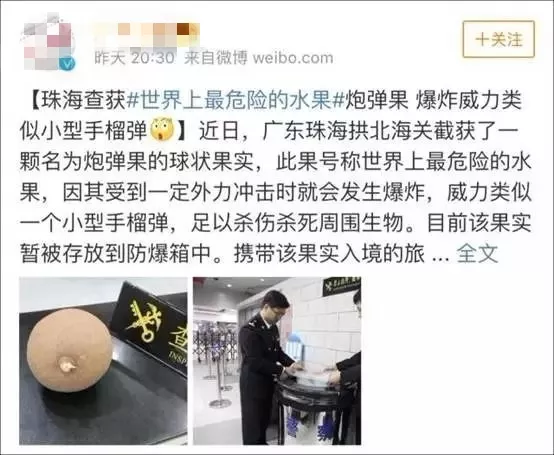 原标题:海关查获世界上"最危险的水果",威力堪比手榴弹?