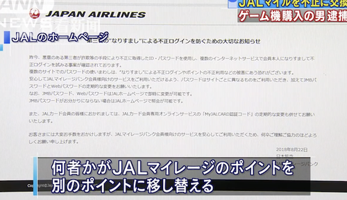 去年8月的时候,日本航空(JAL)因为会员的里程被盗后换取积分的事跟警视厅通报。一共有205名用户的账户里程被网络黑客盗取,其中有21人共计135万日元的里程被交换成了伙伴公司的消费积分,而这些积分都被转移到了一个新开设的账户里,其中111万已经被盗用。