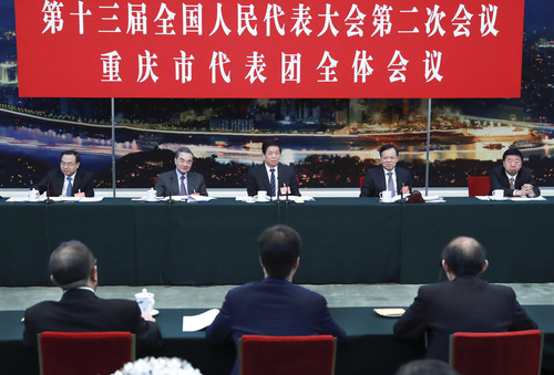 3月9日,中共中央政治局常委、全国人大常委会委员长栗战书参加十三届全国人大二次会议重庆代表团的审议。新华社记者 庞兴雷 摄
