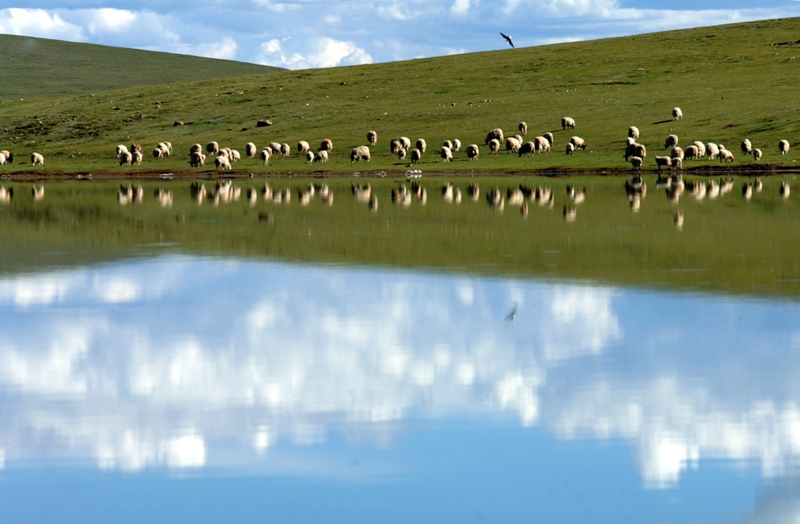 藏北风光(2015年8月31日摄)。当前西藏高原各类生态系统结构整体稳定,气、声、水、土壤、辐射及生态环境质量均保持在良好状态,大部分区域仍处于原生状态,西藏仍然是世界上生态环境最好的地区之一。新华社记者 觉果 摄