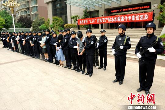 中新网郑州4月20日电(记者李超庆 通讯员张斌)4月20日下午,随着郑州市副市长、市公安局长马义中带领侦查员亲自押解的嫌疑人悉数返郑,一个以假借“脱贫攻坚”名义,横跨豫、桂、粤、川等多省的特大电信诈骗犯罪团伙被一举摧毁,抓获诈骗犯罪嫌疑人28名,涉案金额8000余万元。