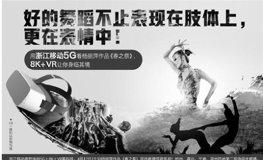 4月,当一场杨丽萍的舞剧《春之祭》在杭州剧院上演,在浙江省内的数个浙江移动5G体验厅内,数百名移动客户也通过5G+8K+VR技术观看了一场充满沉浸感实时演出。“和现场观看的效果一样,甚至还要好,感觉跟舞台是零距离的,像是坐在舞台前面的正中间在看,每一处细节都尽收眼底。360度的视听感受也很让人沉醉。”体验的客户表示。2018年浙江移动首发5G云VR平台,通过搭建支持三屏联动的VR内容综合服务平台,让VR应用真正走出展厅,开启家庭娱乐新方式。