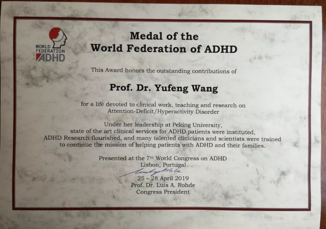 (此荣誉主要奖励王玉凤教授一生致力于ADHD的临床、教学及研究工作。