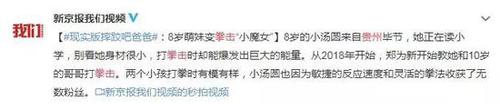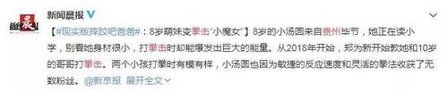 视频中的这对兄妹来自贵州省毕节的贫困山区,而年仅8岁的主人公名叫“小汤圆”,她与自己的哥哥在自家院坝练习拳击,在训练过程中两人的对抗非常激烈,“小汤圆”还经常用自己犀利的出拳将哥哥打得节节败退。