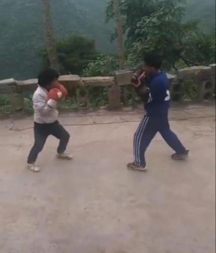 据了解,日常生活中两个孩子并没有专业练习的对象,因此他们就互相练习拳击,经常被打得鼻青脸肿,但是一直都在坚持。
