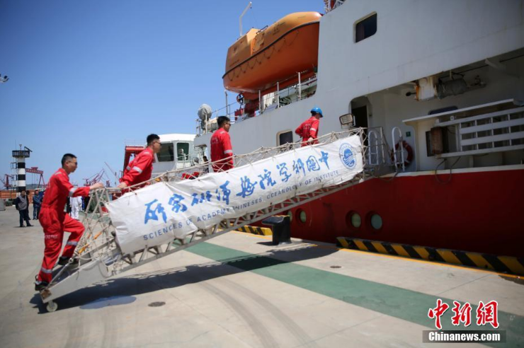 中国“科学”号海洋科学综合考察船5月18日从青岛母港起航,赴西太平洋执行中国国家科技基础资源调查专项“西太平洋典型海山生态系统科学调查”航次科考。该航次将围绕深海大洋生物多样性和资源热点——海山进行系统性综合科学考察,共有来自中国多个科研机构及高校的80名科考队员参加。“科学”号预计6月下旬完成航次任务后返回福建厦门。图为科考队员登上“科学”号准备起航。 中新社记者 胡耀杰 摄