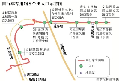 北京首条“自行车高速”——回龙观至上地自行车专用路本周将开通,有望缓解昌平回龙观至海淀上地软件园交通拥堵状况,惠及两地之间约1.16万“通勤族”。这条自行车专用路共设8个出入口,其中6个安有自行车助力装置,路面防滑性优于普通非机动车道。