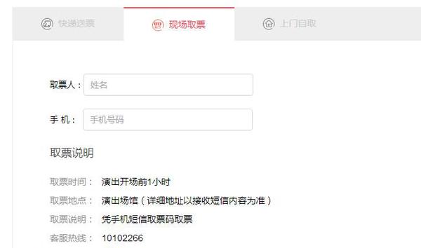 对此,官网客服称部分订单由于快递时效原因,为了不耽误消费者正常观演,故采用现场取票的方式;取票短信通常会在演出前一天晚上24点前或演出当天12点前发出,会告知取票人的信息和地点,并附加取票码,供用户确认收货。