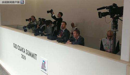 △NHK对中美元首会晤做了短暂的直播,G20新闻中心的一块电视屏幕吸引了各国记者。通过一组图片来感受一下这个“吸睛”的过程。(央视记者沈忱、荆伟,央广记者李思默拍摄)