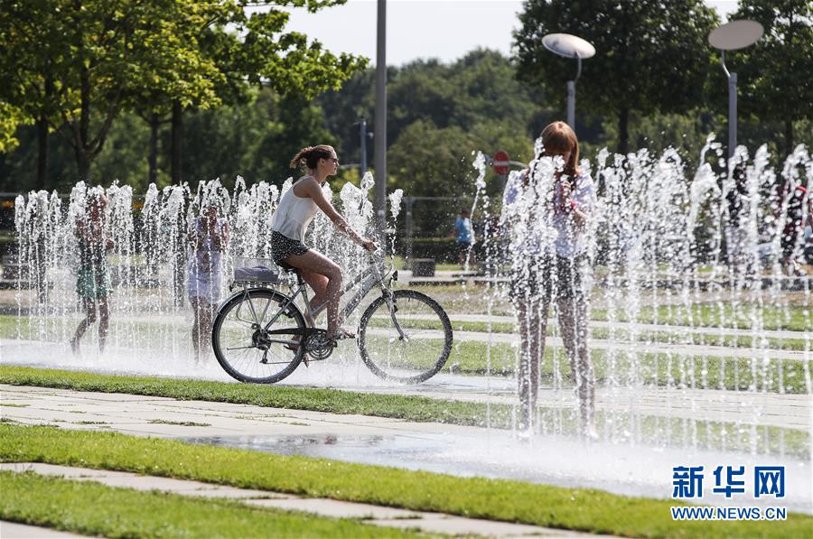 7月25日,在德国首都柏林,人们在一处喷泉冲凉。 德国近日遭遇高温侵袭,部分地区25日的气温超过40摄氏度。 新华社记者 单宇琦 摄