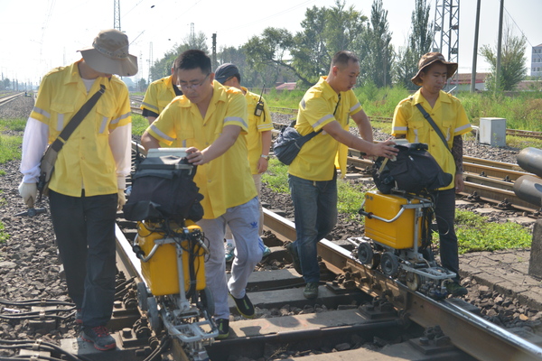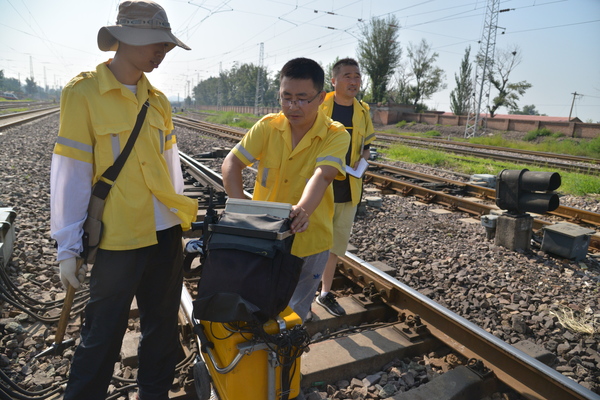 近日,面对持续的高温酷暑天气,中国铁路北京局集团有限公司张家口工务段探伤车间加强对钢轨病害日常巡查,当好“钢轨医生”,保证暑运期间列车安全运行。(摄影 李晨光)