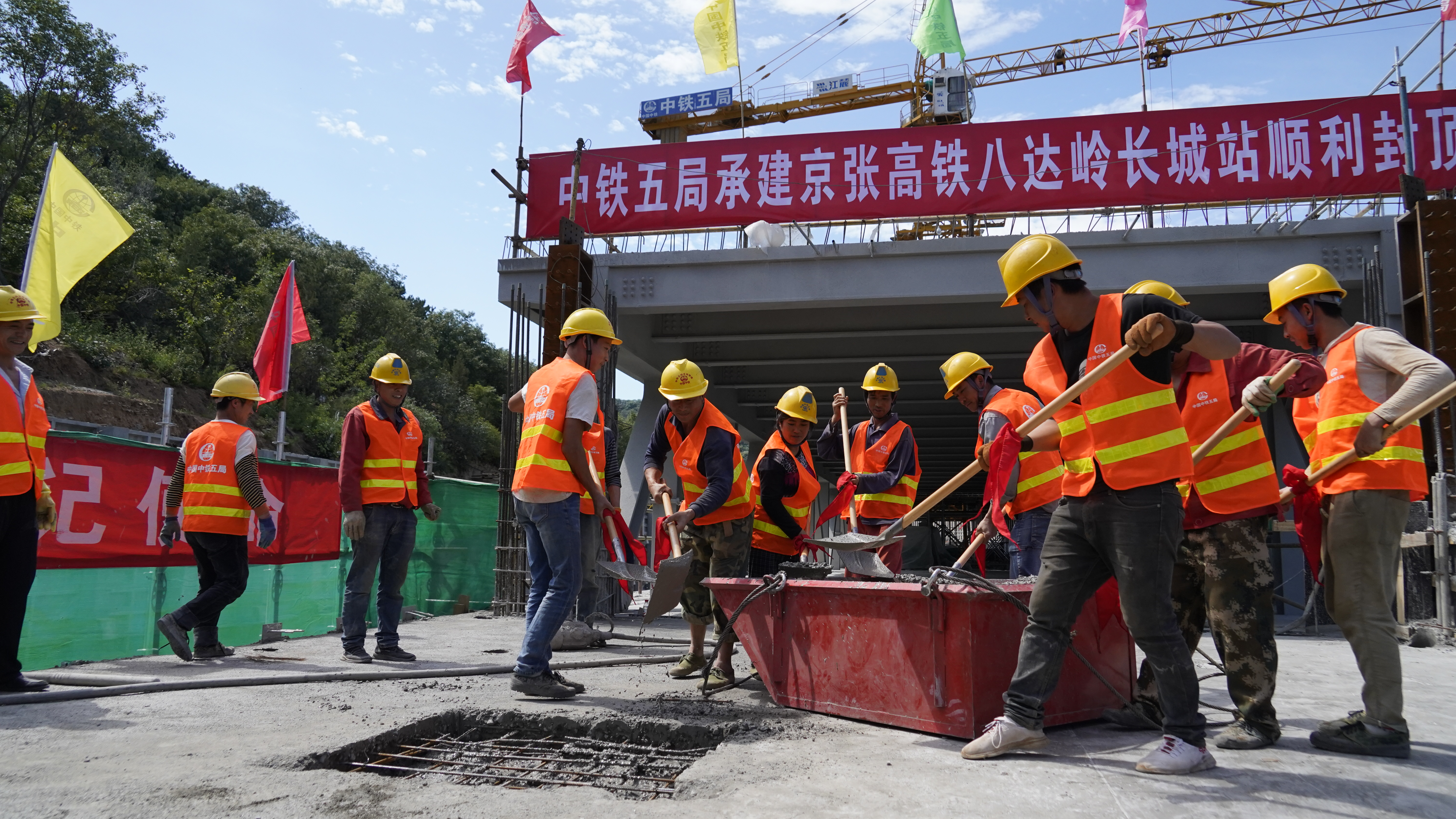 8月23日上午11点28分,京张高铁八达岭长城站主体结构正式封顶。人民政协网记者 付振强 摄