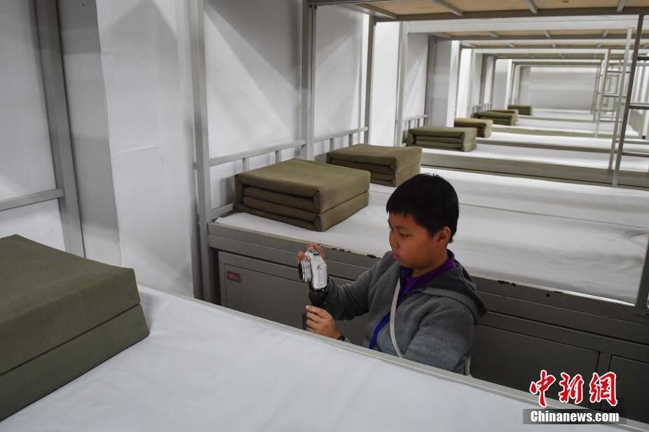 10月6日,香港各界青少年访京团一行参访天安门国旗护卫队。据悉,访京团由来自香港青少年军总会、香港少年领袖团、香港交通安全队、香港童军总会、香港升旗队总会等多个香港制服团体的青少年组成。访京团团员在参访的同时,还参加“国旗下话成长”交流分享会,与部分全国及北京青联委员、国旗护卫队战士进行交流。图为访京团小团员拍摄国旗护卫队战士的床铺。 中新社记者 崔楠 摄