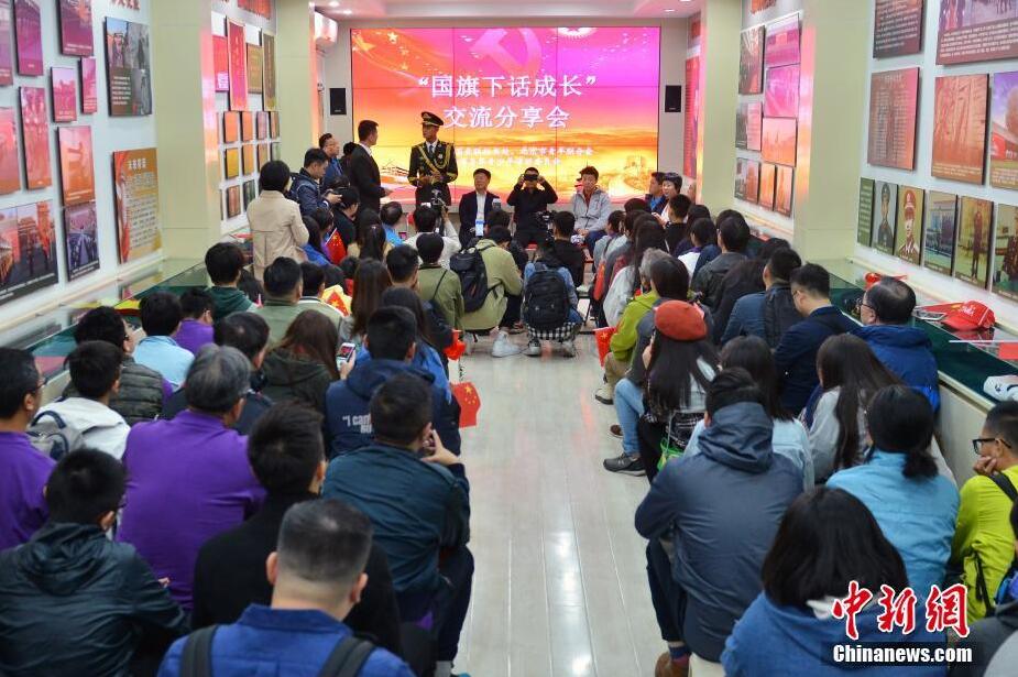 10月6日,香港各界青少年访京团一行参访天安门国旗护卫队。据悉,访京团由来自香港青少年军总会、香港少年领袖团、香港交通安全队、香港童军总会、香港升旗队总会等多个香港制服团体的青少年组成。访京团团员在参访的同时,还参加“国旗下话成长”交流分享会,与部分全国及北京青联委员、国旗护卫队战士进行交流。中新社记者 张兴龙 摄