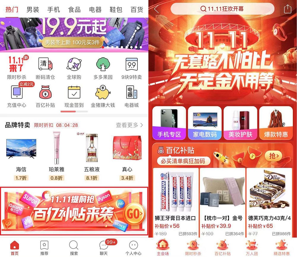 拼多多“双11”百亿补贴再加码 20000款产品击穿行业底价