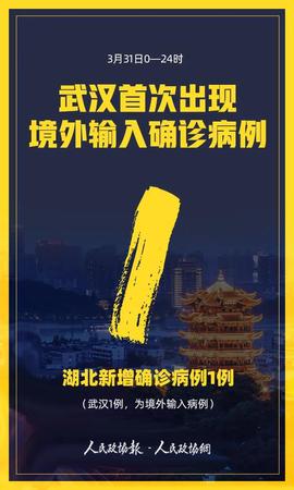 3月31日0—24时,31个省(自治区、直辖市)和新疆生产建设兵团报告新增确诊病例36例,其中境外输入病例35例,本土病例1例(广东1例);新增死亡病例7例(湖北6例,上海1例);新增疑似病例26例,均为境外输入病例。 当日新增治愈出院病例186例,解除医学观察的密切接触者1418人,重症病例减少62例。 境外输入现有确诊病例691例(含重症病例20例),现有疑似病例169例。累计确诊病例806例,累计治愈出院病例115例,累计死亡病例0例。 截至3月31日24时,据31个省(自治区、直辖市)和新疆生产建设兵团报告,现有确诊病例2004例(含重症病例466例),现有疑似病例172例。累计确诊病例81554例,累计治愈出院病例76238例,累计死亡病例3312例,累计追踪到密切接触者707913人,尚在医学观察的密切接触者20314人。 湖北新增确诊病例1例(武汉1例,为境外输入病例),新增治愈出院病例173例(武汉173例),新增死亡病例6例(武汉5例),现有确诊病例1283例(武汉1279例),其中重症病例435例(武汉432例)。累计治愈出院病例63326例(武汉46175例),累计死亡病例3193例(武汉2553例),累计确诊病例67802例(武汉50007例)。新增疑似病例0例(武汉0例),现有疑似病例0例(武汉0例)。 31个省(自治区、直辖市)和新疆生产建设兵团报告新增无症状感染者130例,当日转为确诊病例2例,当日解除隔离302例。尚在医学观察无症状感染者1367例,比前一日减少174例。 累计收到港澳台地区通报确诊病例1077例:香港特别行政区714例(出院128例,死亡4例),澳门特别行政区41例(出院10例),台湾地区322例(出院39例,死亡5例)。