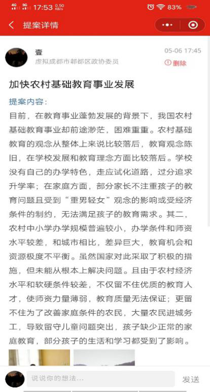 人民政协网5月25日电(记者 张佳琪 通讯员 李博楠 杨元芳)农村生活垃圾分类管理如何完善?农村基础教育怎样让人民更满意?民众自我防疫意识如何提高?……近日,有关社会热点话题的讨论频繁出现在四川工商学院学生的聊天群中。