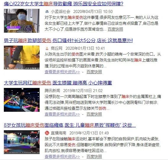 小编网上搜索发现,因蹦床引发的伤害事故并不少!