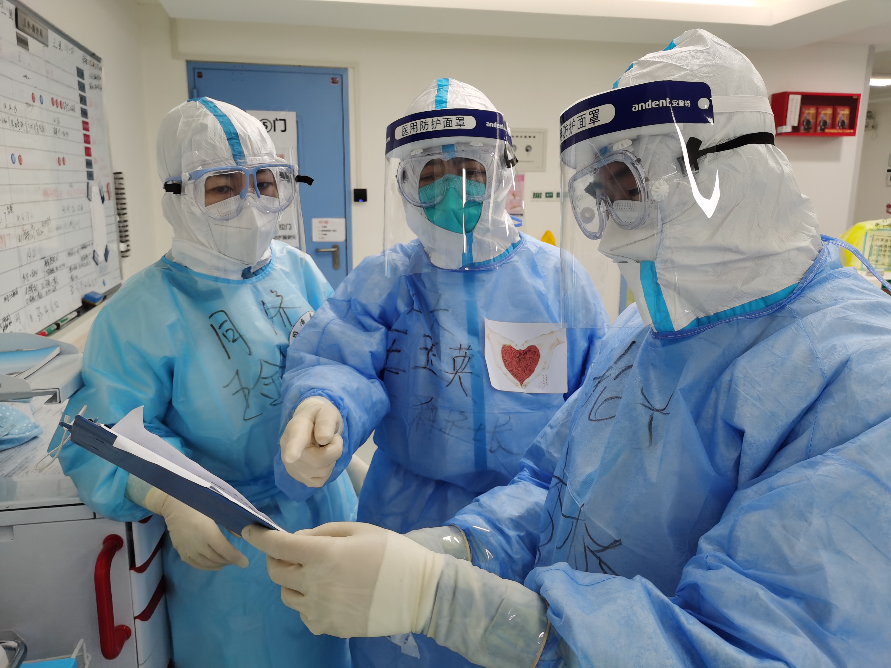 到达武汉后,2月2日,王玉英所在的北京大学第一医院与同程抵达的北京大学人民医院、北京大学第三医院医疗队汇合。经过短暂的流程培训,换上防护服就直接进入隔离病房,当晚就开始收治病人。2月7日,在国家卫健委的统筹安排下,北大医学三家医院各自分管一个病房,北京大学第一医院负责的武汉市中法新城同济医院病区由王玉英担任护士长,第二天就要启动病人收治。