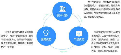 上海瓶安新能源有限公司,主营业务为面向电动两轮、三轮车用户,提供专业、安全的锂电池产品,公司汇聚中科院团队主力研发,保证产品的先进科技含量,安全节能要求。瓶安为电动自行车用户提供智能安全锂电池租赁服务,不仅比用户购买电池更实惠,还解决了用户电池断电、被盗、续航、爆炸等诸多使用痛点,更重要的是,此项业务积极响应国家政策,贯彻执行国家绿色节能政策的有关文件,锂电池将全面替换高污染的铅酸电池。租赁锂电池退役后可有效回收、梯次利用。